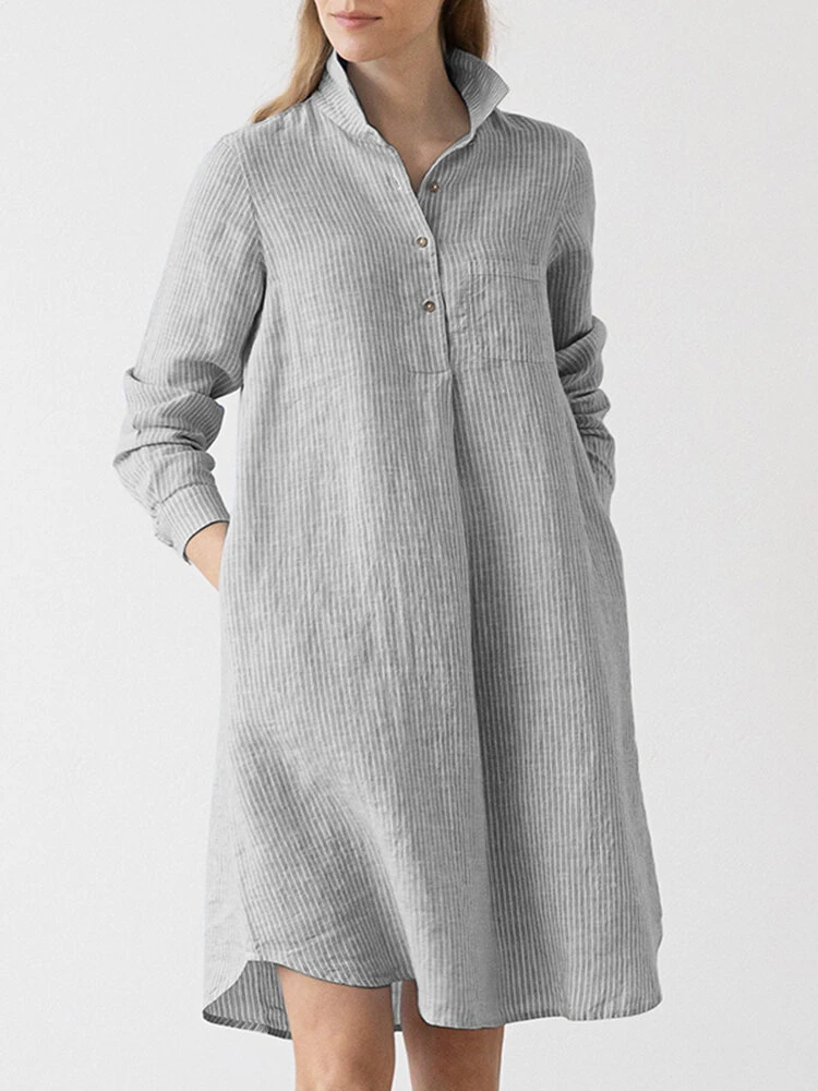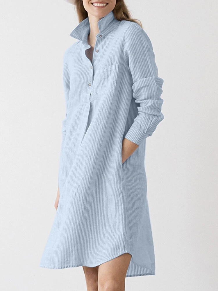 Stripe Print Pocket Button Half Placket Lapel Shirt Dress