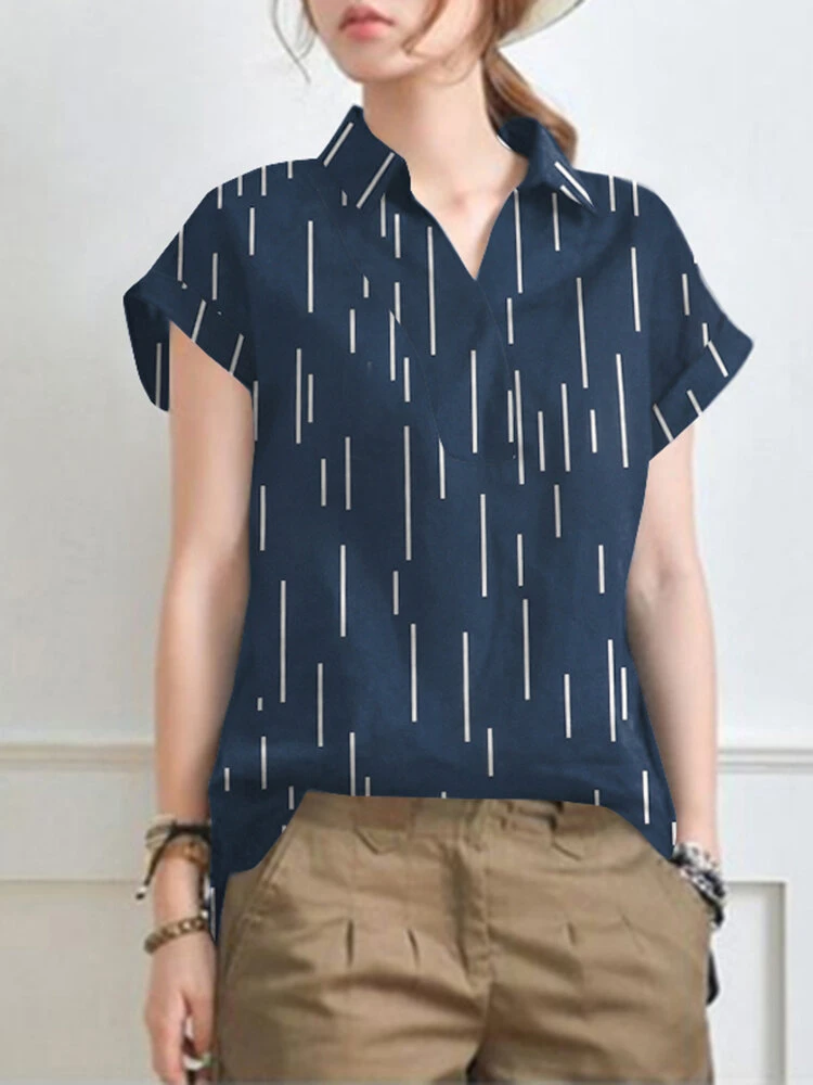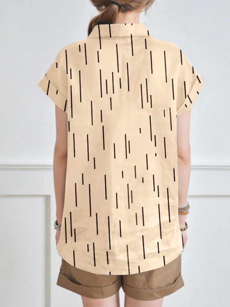 Stripe Print Short Sleeve Lapel Blouse For Women