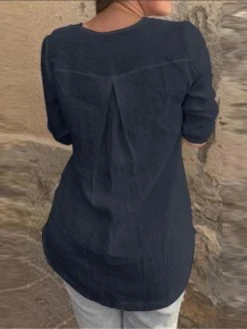 Embroidered Stand Collar Irregular Long Sleeve Vintage Blouse