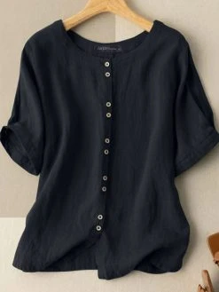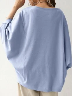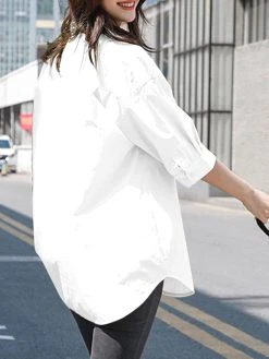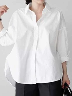 Solid Dolman Sleeve Lapel Loose Irregular Buttton Down Shirt