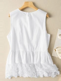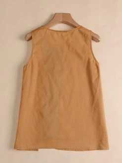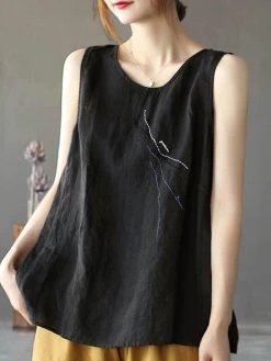 Women Floral Embroidered Crew Neck Cotton Sleeveless Tank Top