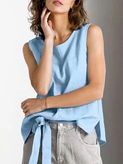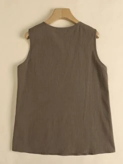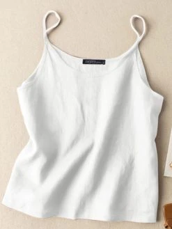 Women Solid Button Detail Cotton Casual Spaghetti Strap Cami