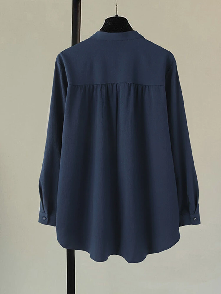 Color: Khaki, White, Blue Material: Polyester Style: Casual Sleeves Length: Long Sleeve Collar: Stand Collar Season: Autumn, Spring Package Included:1*Blouse