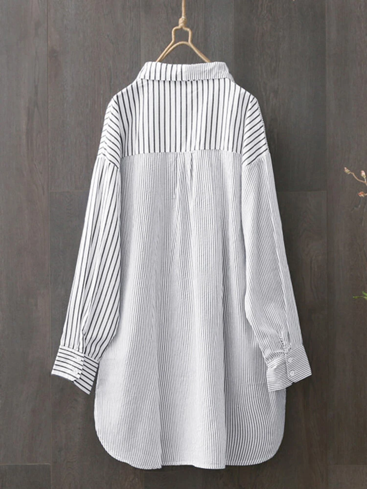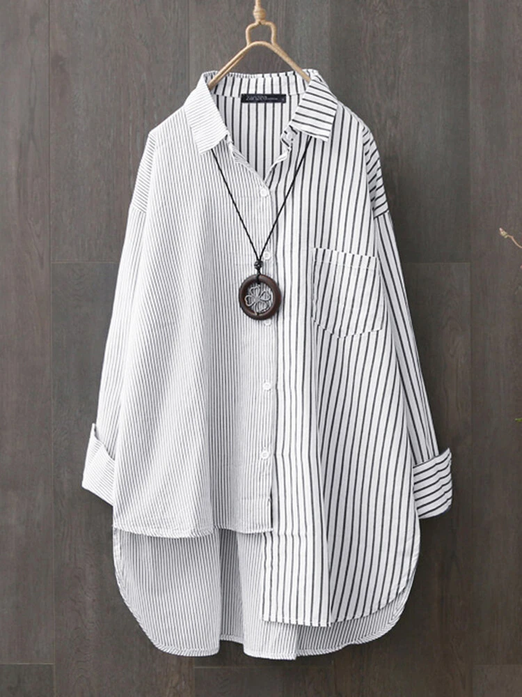 Two Tone Striped Asymmetrical Plus Size Shirt For Women