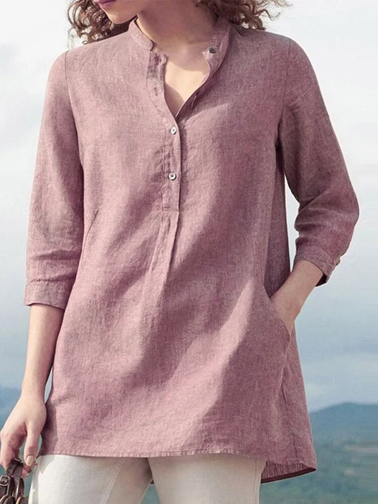 Color: Gray, Blue, Pink Occasion: Casual Sleeves Length: 3/4 Length Sleeve Season: Autumn, Spring Material: Polyester Design Element: Button Package included:1*Shirt