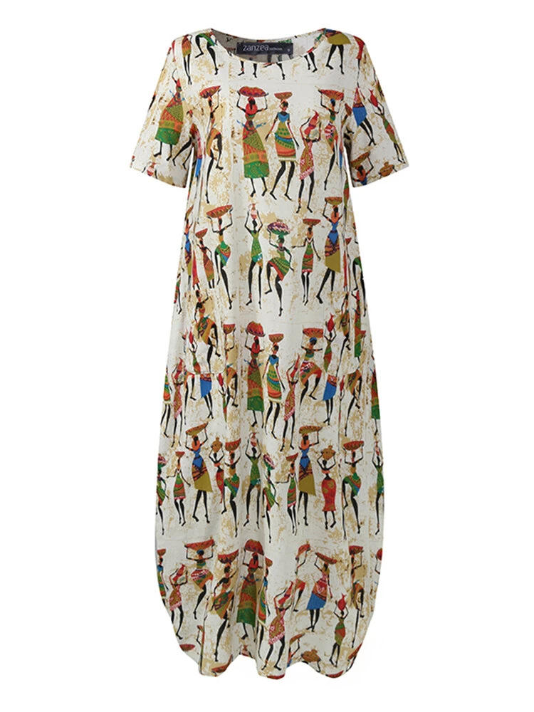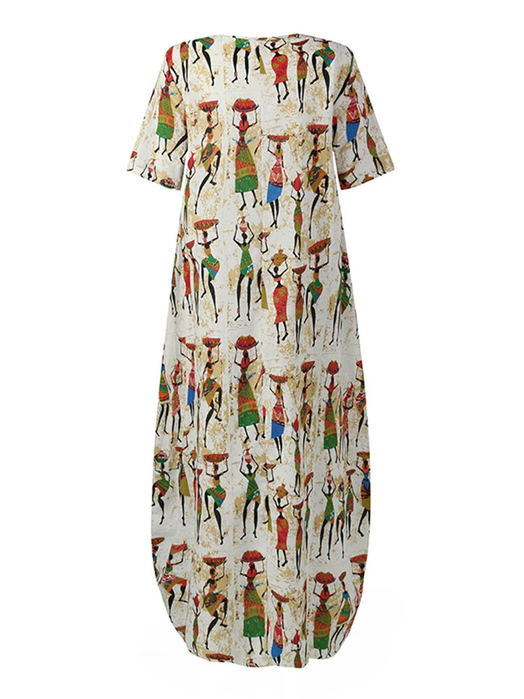 Vintage Ethnic Print Short Sleeve Plus Size Dress