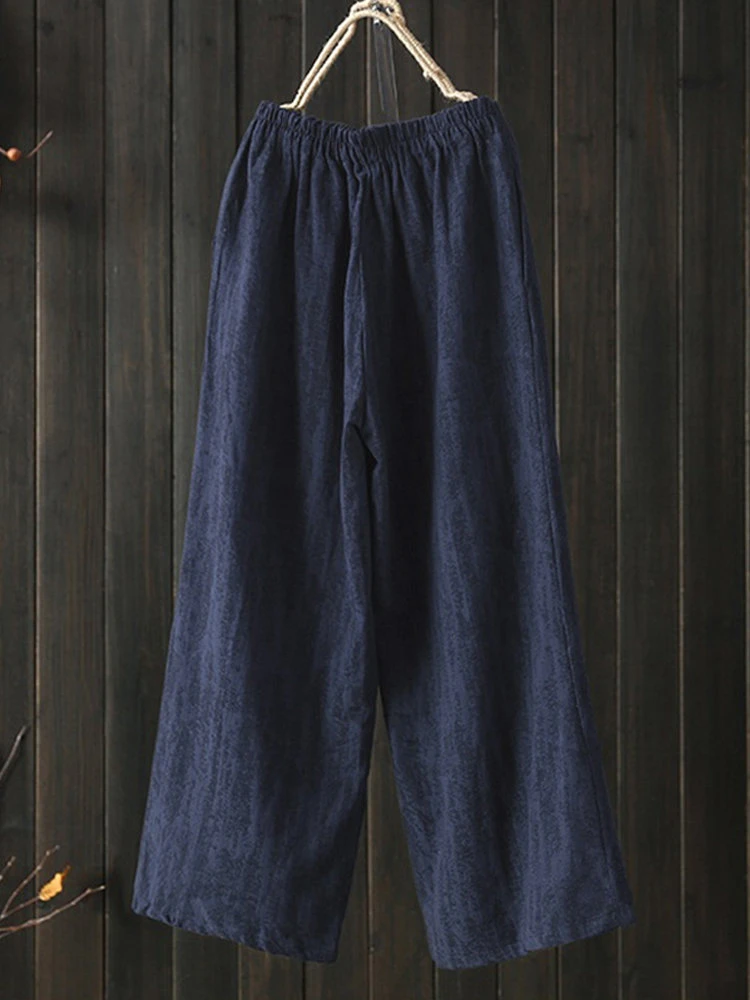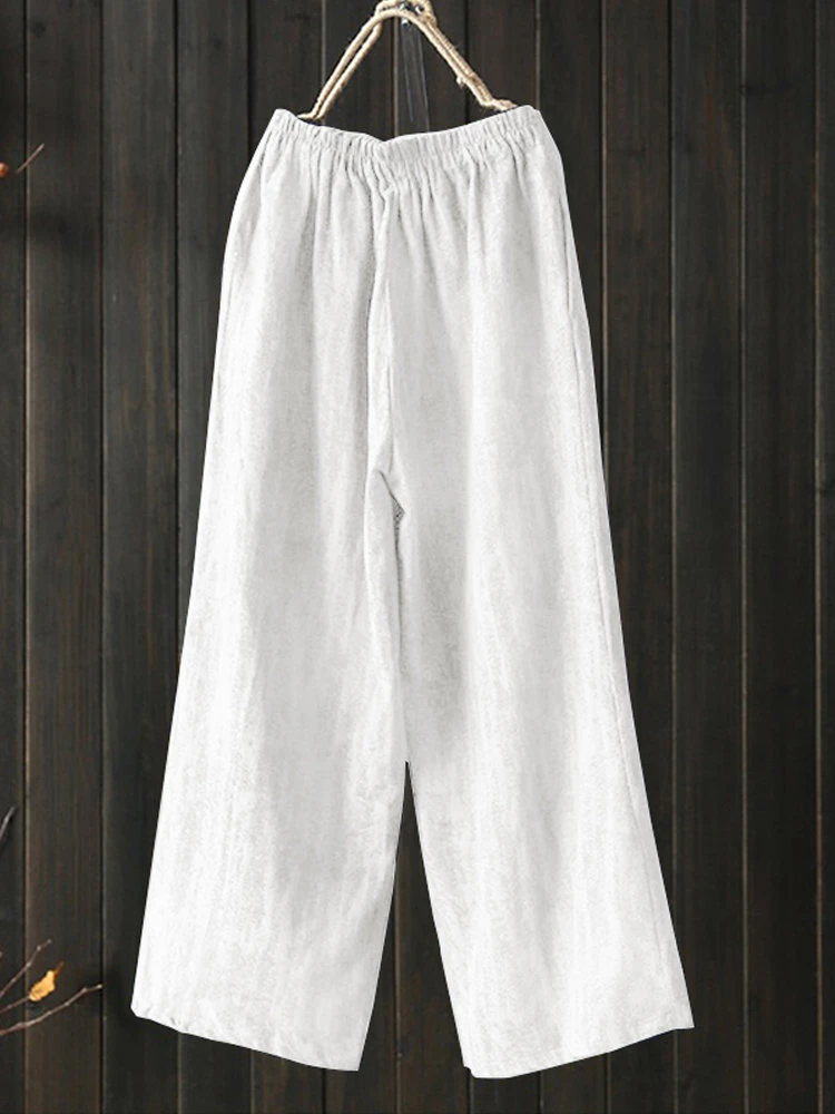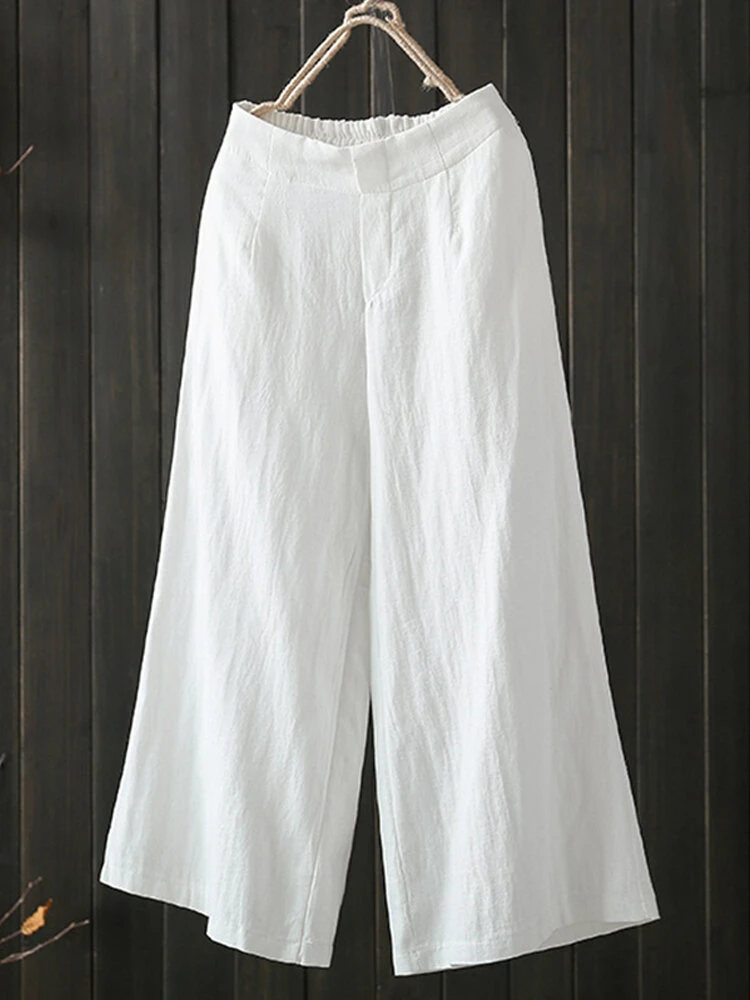 Wide Leg Solid Color Loose Elastic Waist Casual Pants