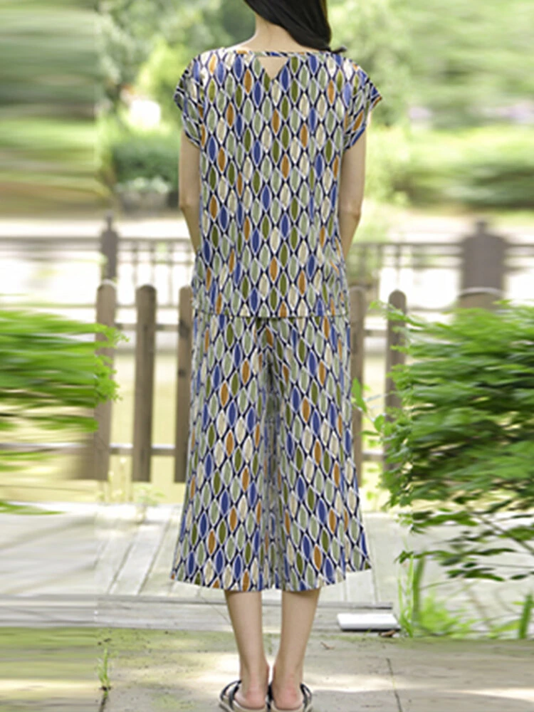 Women Colorful Random Print Crew Neck Short Sleeve Co-ords