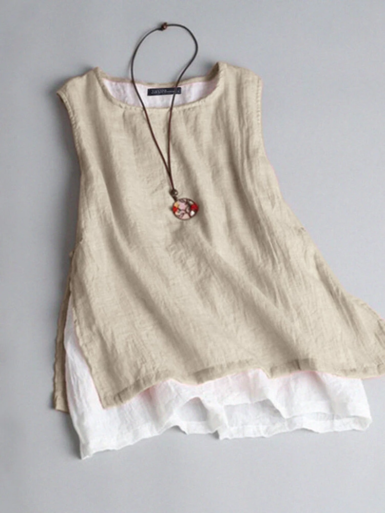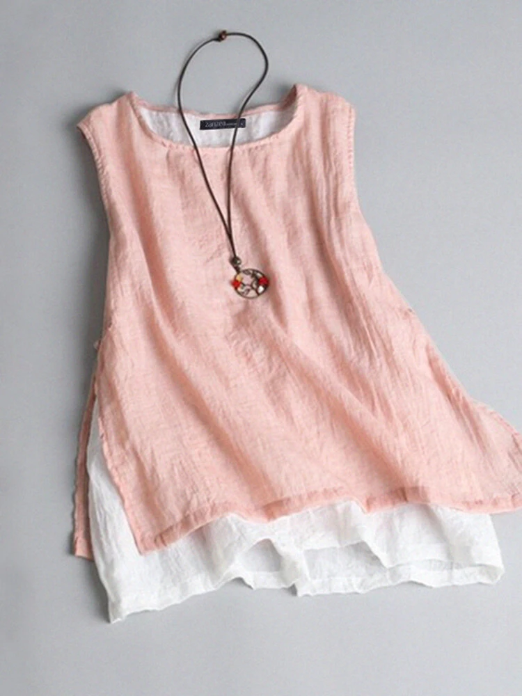 Women Contrast Patchwork Side Split Sleeveless Tank Top