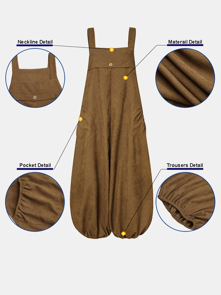 Color: Black, Navy Blue, Brown Material: Corduroy Length: Pants Occasion: Casual Season: Summer, Spring Thickness: Moderate Design Element: Pocket Style: Casual Package included:1*Jumpsuit