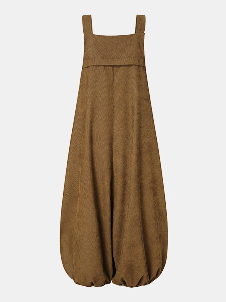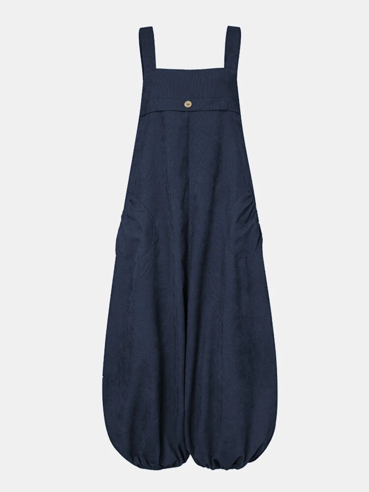 Women Corduroy Solid Color Casual Jumpsuit With Pockets