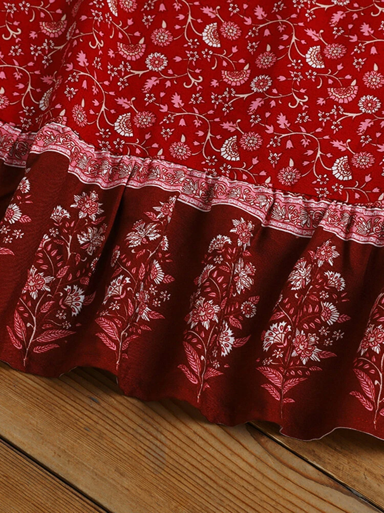 Women Ditsy Floral Print Ruffle Hem Bohemian Spaghetti Strap Dress