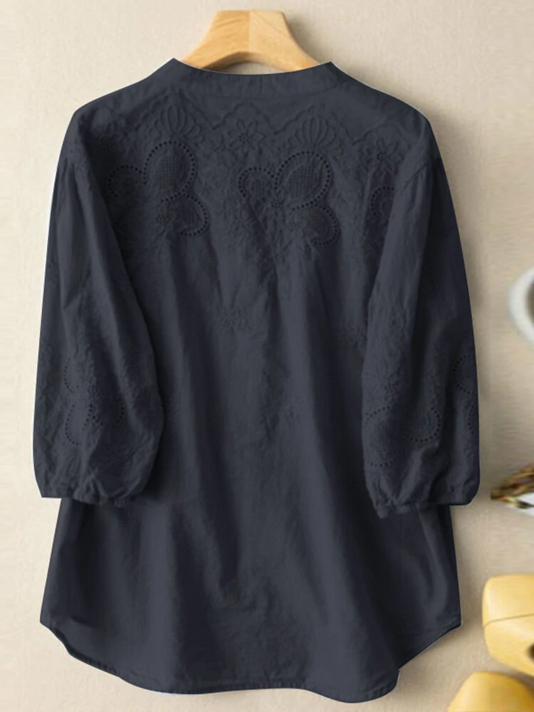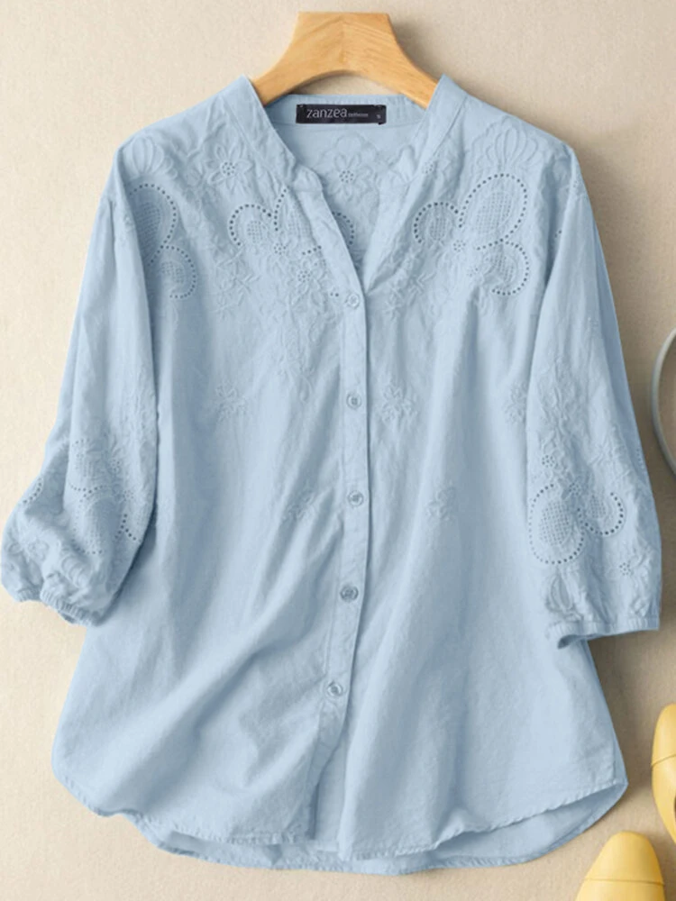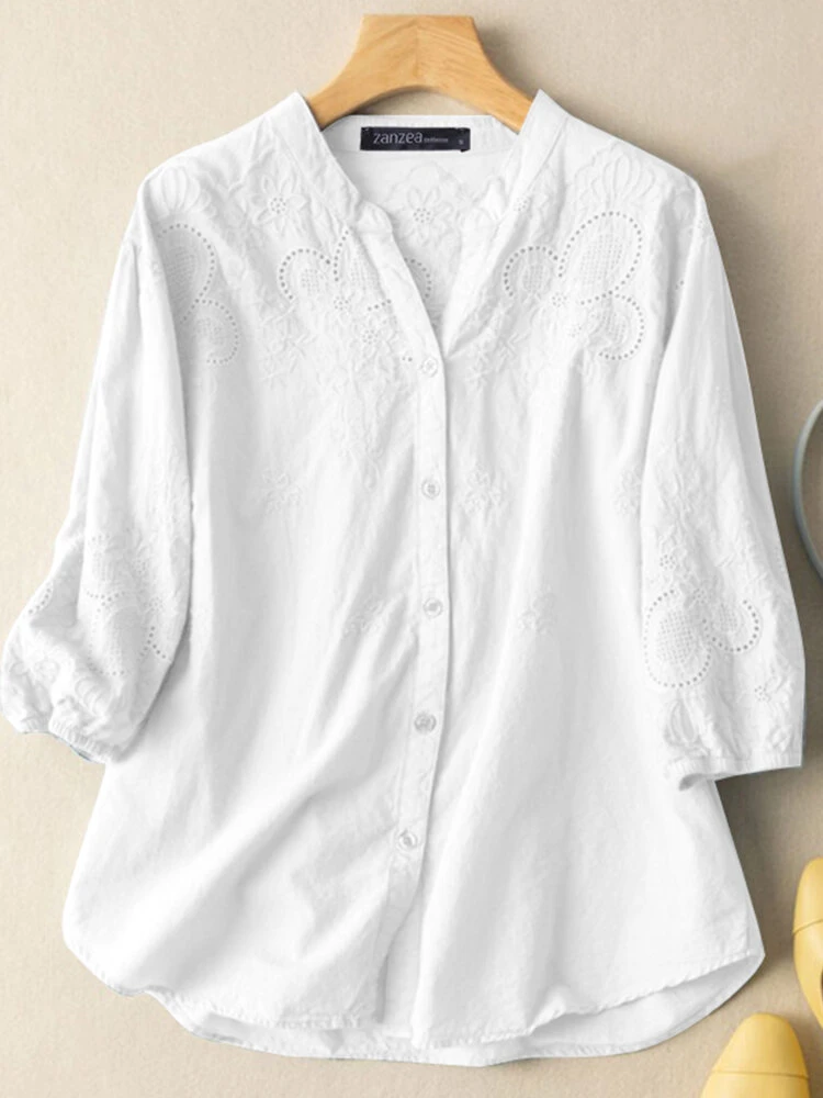 Be the first to review “Women Floral Jacquard Stand Collar Button Up Cotton Shirt” Cancel reply