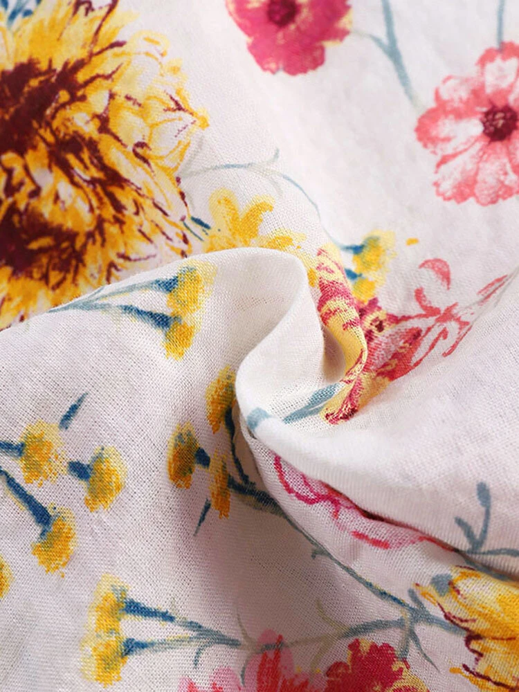 Color: White, Yellow Style: Casual Occasion: Vacation Material: Rayon, Cotton Pattern: Floral Print Season: Summer Collar: V-neck Hem Design: Regular Hem Sleeves Length: 3/4 Length Sleeve Sleeves Type: Bell Sleeves Fit Type: Regular Package Included:1*Dress