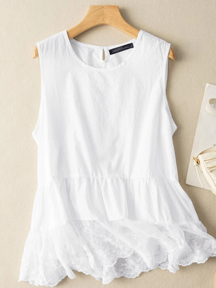 Be the first to review “Women Lace Patchwork Hem Crew Neck Sleeveless Tank Top” Cancel reply