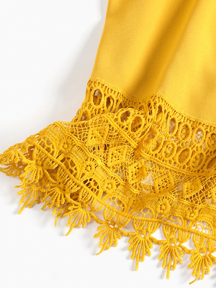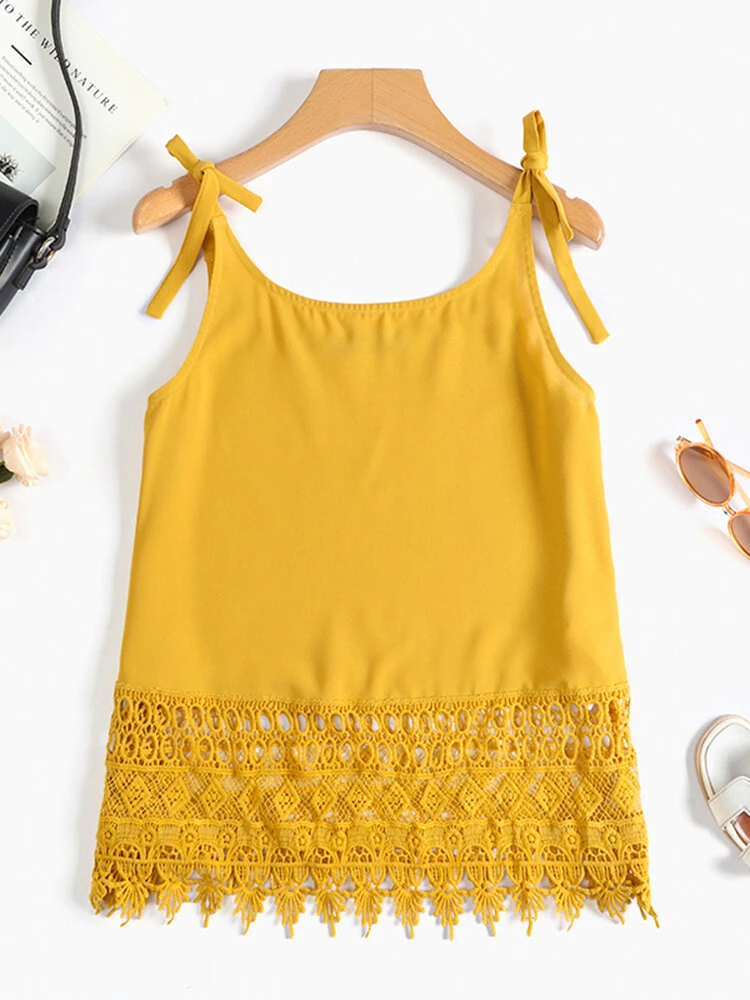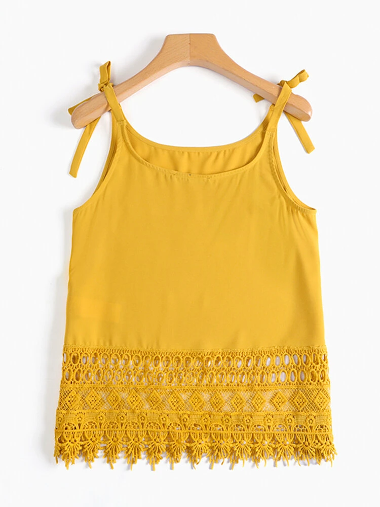Women Lace Patchwork Hem Tie Straps Casual Cami