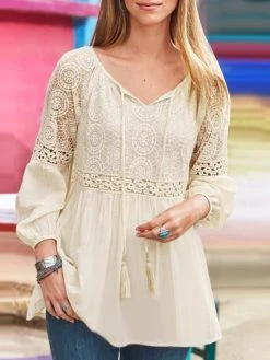 Be the first to review “Women Lace Patchwork Tie Crew Neck Long Sleeve Blouse” Cancel reply