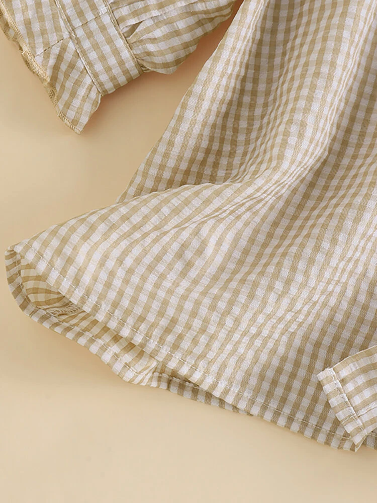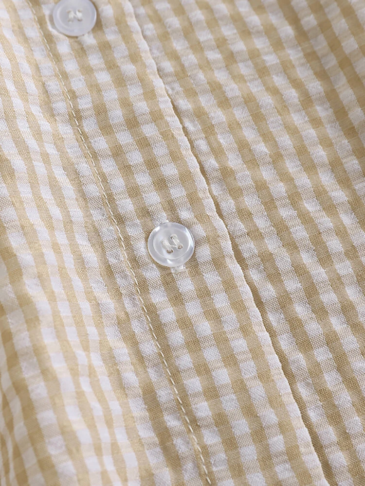 Women Plaid Seersucker Button Front Casual 3/4 Sleeve Shirt