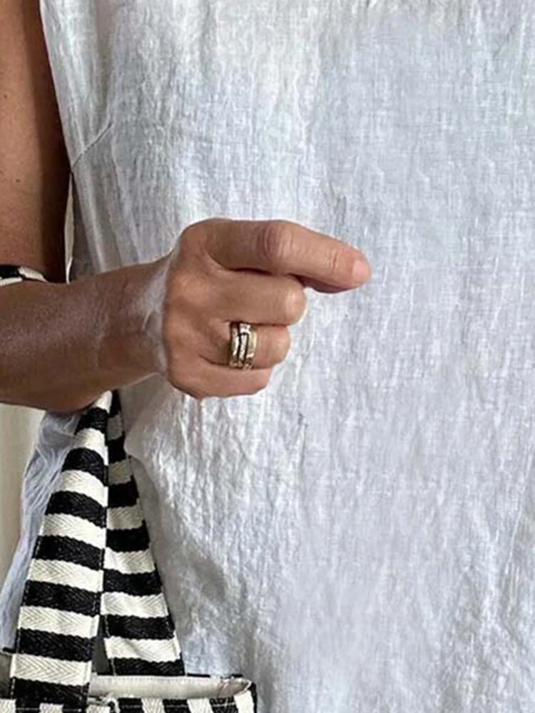 Women Plain Texture V-Neck Cotton Sleeveless Tank Top