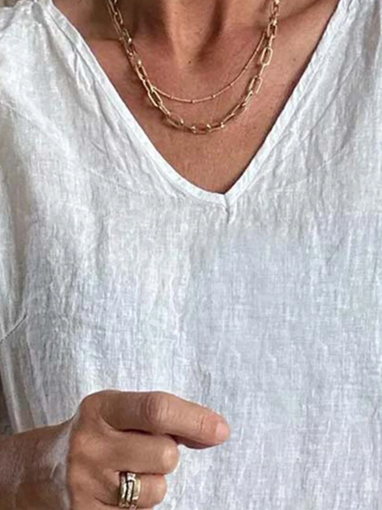 Color: White Material: Cotton Style: Casual Sleeves Length: Sleeveless Collar: V-neck Fit Type: Regular Season: Summer Package Included:1*Tank
