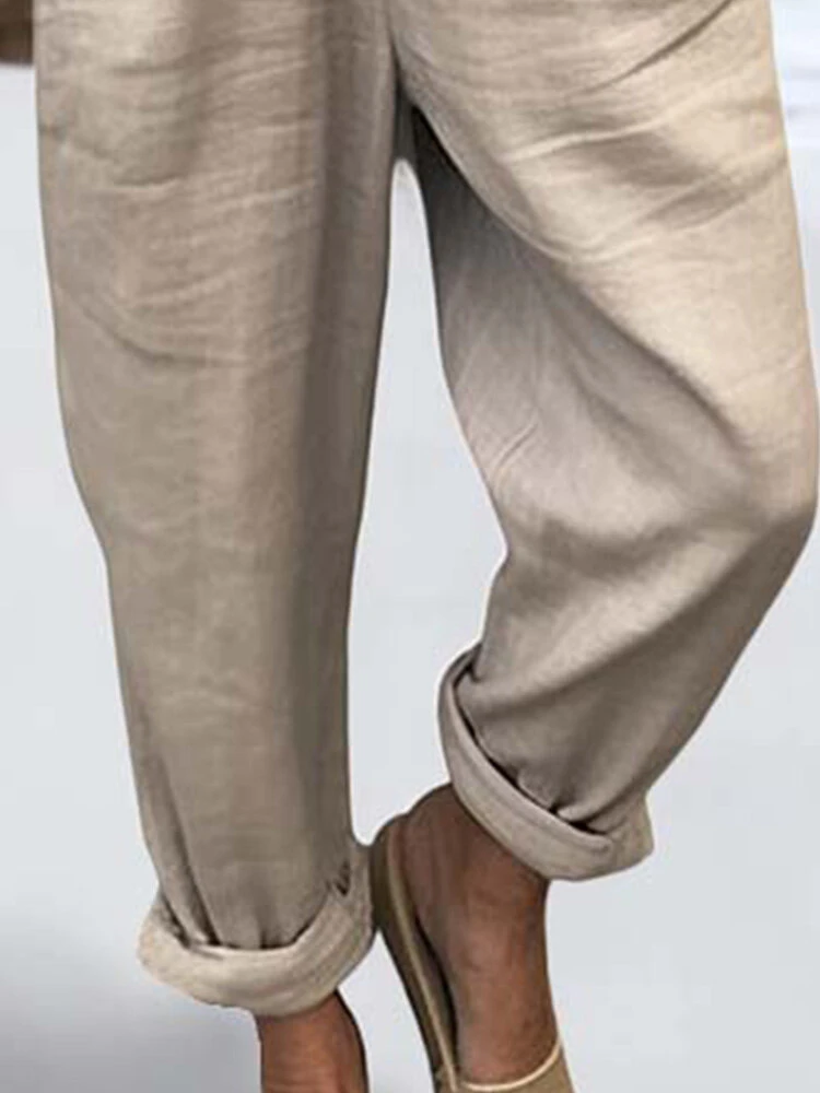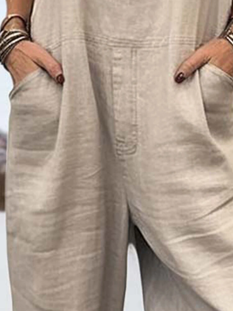 Women Solid Color Double Pocket Casual Overall Jumpsuit