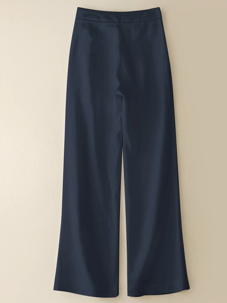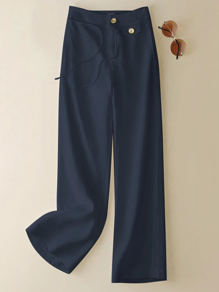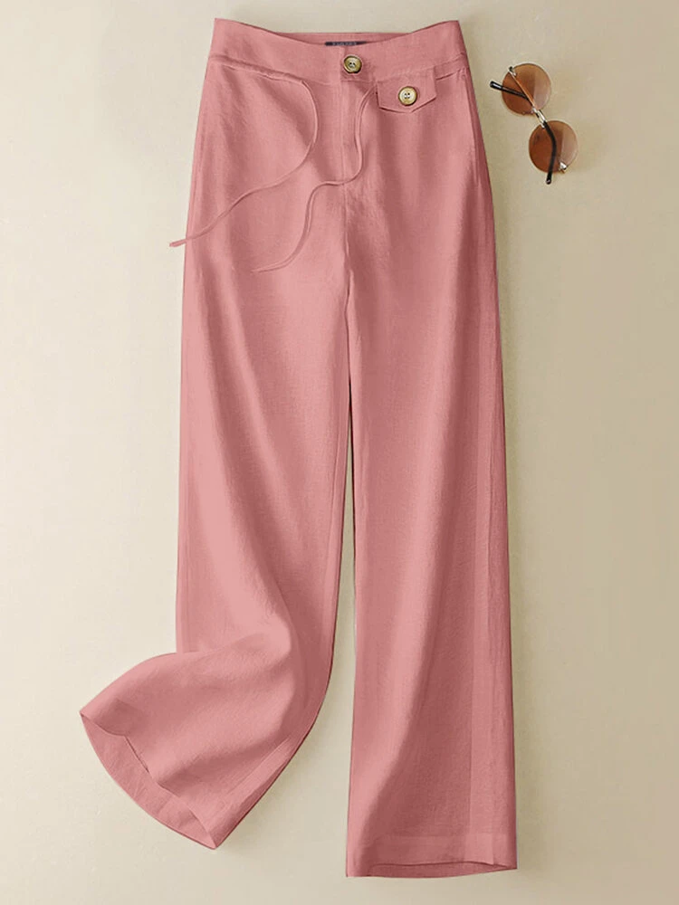 Women Solid Cotton Drawstring Waist Casual Straight Pants
