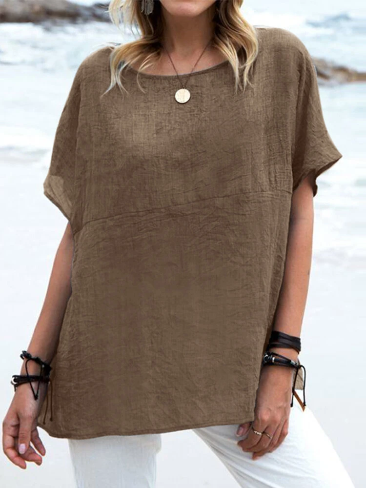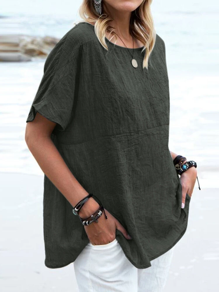 Color: Navy, Khaki, Gray Occasion: Everyday Material: Cotton, Linen Pattern: Plain Style: Casual Sleeves Length: Short Sleeve Collar: Crew Neck Season: Summer Package Included:1*T-shirt