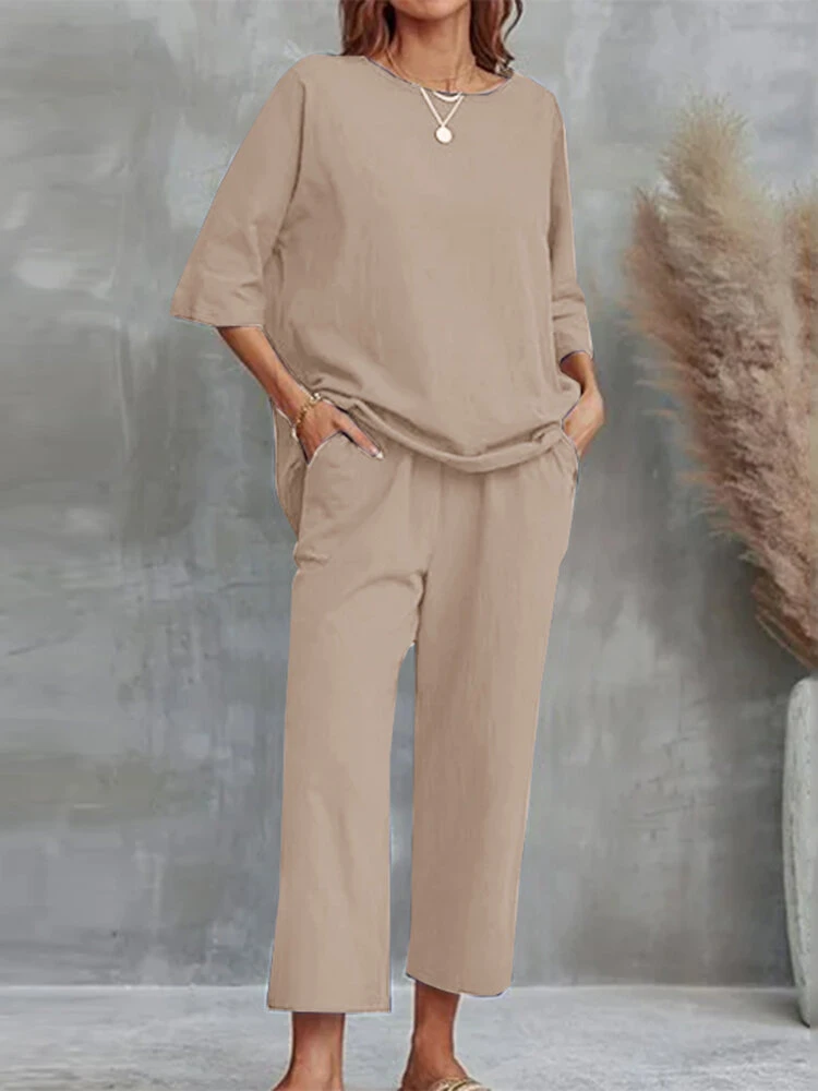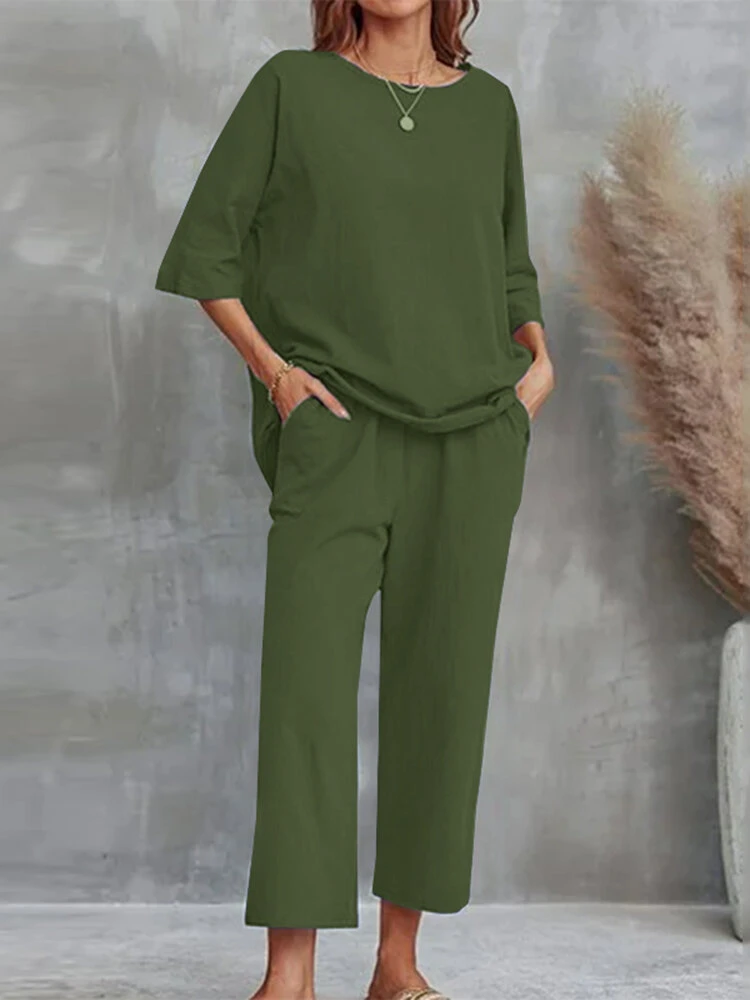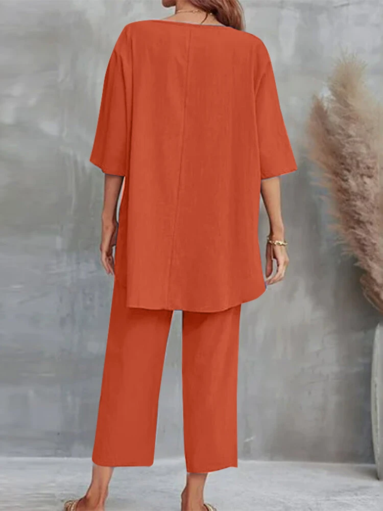 Color: Blue, Apricot, Orange, Army Green Material: Cotton Season: Summer Waist Design: Mid Waist Design Element: Pocket Style: Casual Fit Type: Loose Package Included:1*Top1*Pants