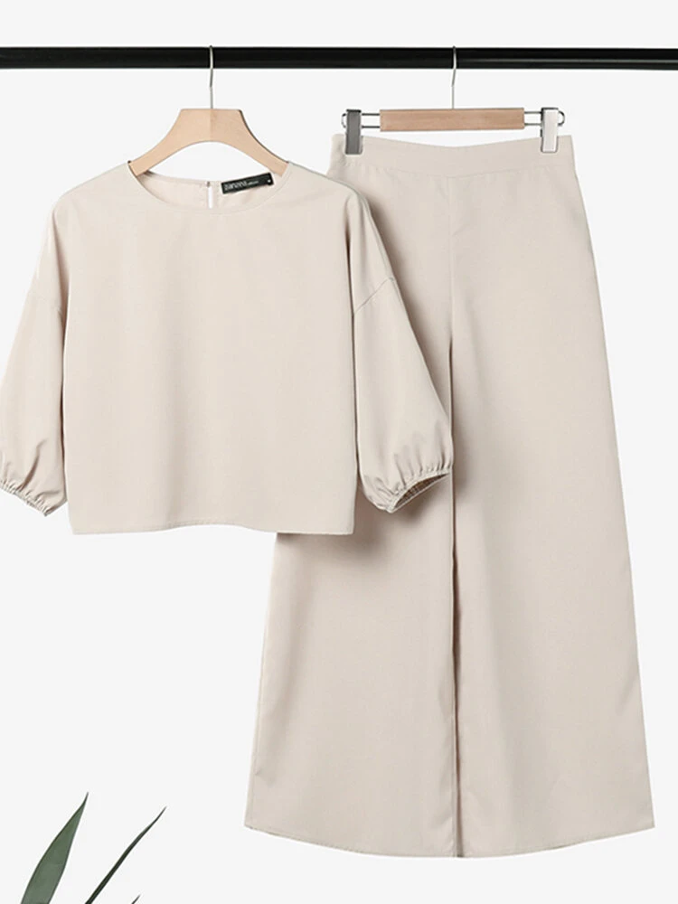 Be the first to review “Women Solid Lantern Sleeve Flared Pants Casual Co-ords” Cancel reply
