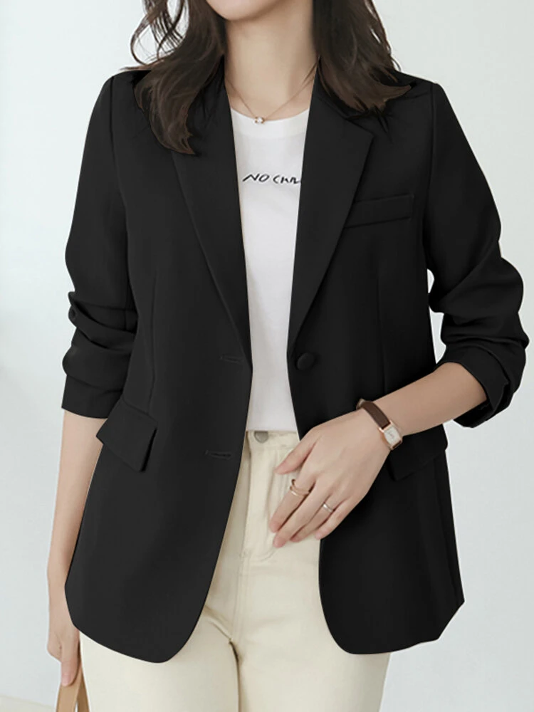 Be the first to review “Women Solid Long Sleeve Button Front Lapel Blazer” Cancel reply