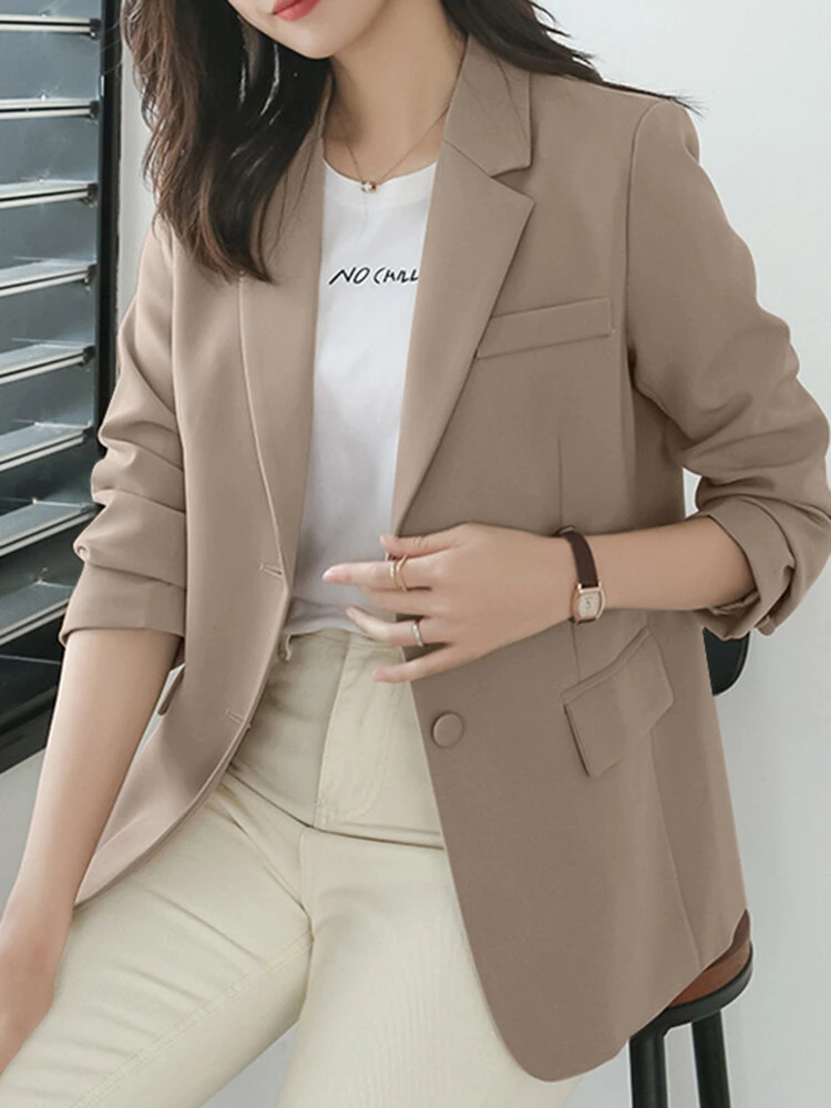 Color: Khaki, Black Material: Polyester Style: Casual Thickness: Moderate Sleeves Length: Long Sleeve Collar: Lapel Collar Season: Autumn, Spring Package Included:1*Blazer