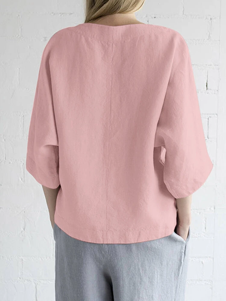 Color: Khaki, Pink, Army Green Material: Cotton Style: Casual Sleeves Length: 3/4 Length Sleeve Sleeves Type: Regular Sleeve Fit Type: Regular Season: Summer Package Included:1*Blouse