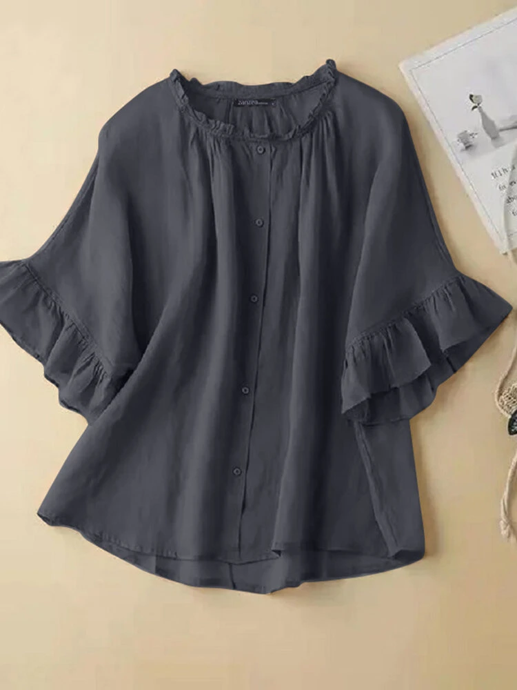 Be the first to review “Women Solid Ruffle Sleeve Crew Neck Casual Blouse” Cancel reply