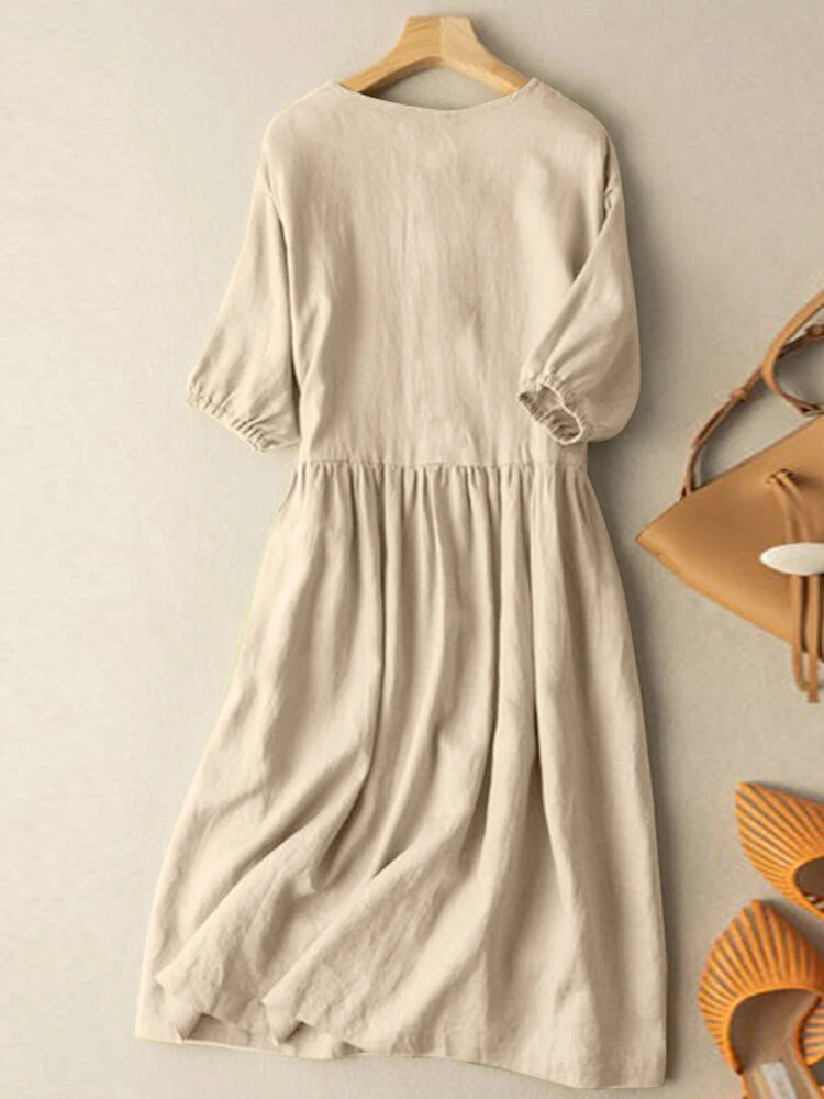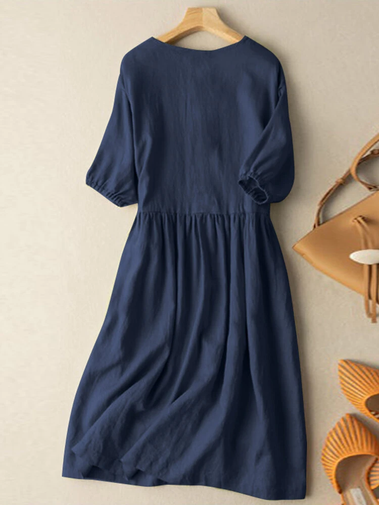 Women Solid Short Sleeve Crew Neck Casual Dress