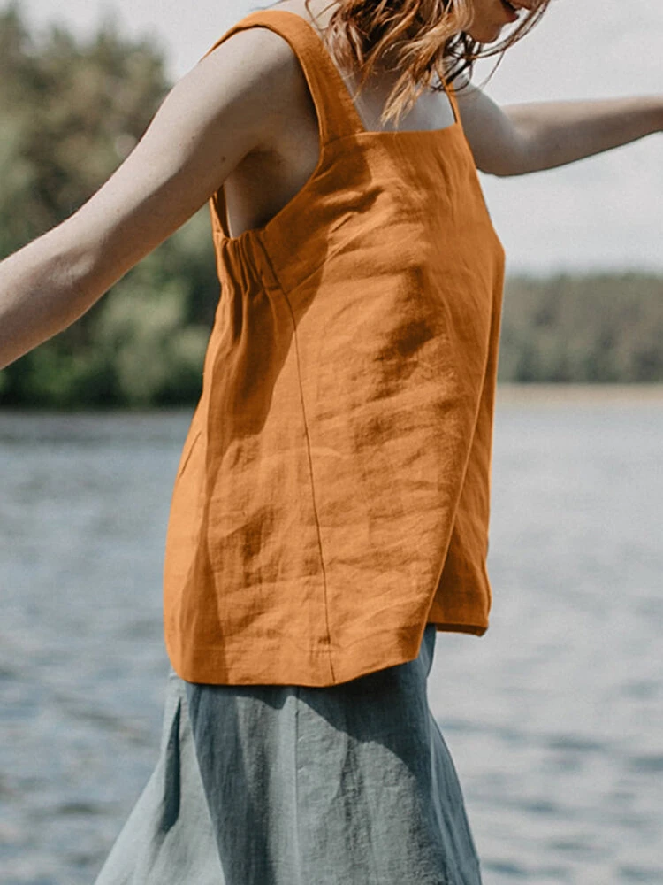 Women Solid Square Collar Cotton Sleeveless Tank Top