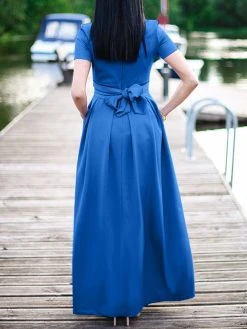 Color: Black, Apricot, Blue, Pink Style: Casual Occasion: Vacation Material: Spandex, Polyester Pattern: Plain Design Element: Tiered Season: Summer Collar: Square Collar Hem Design: Regular Hem Sleeves Length: Short Sleeve Sleeves Type: Ruffle Sleeves Length: Maxi Fit Type: Regular Package Included:1*Dress
