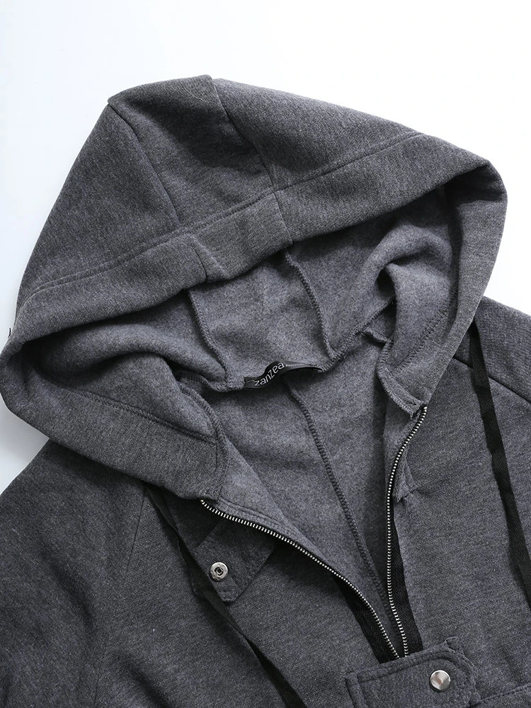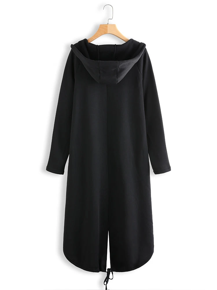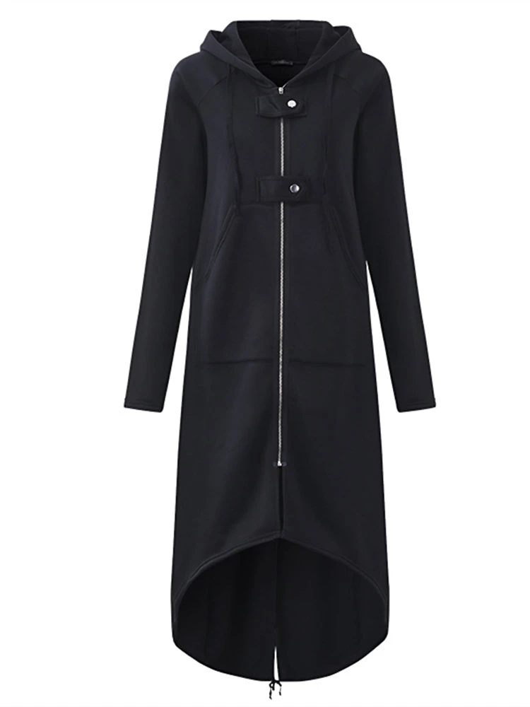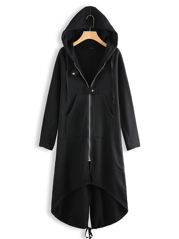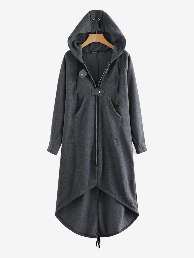 Women Zipper Long Sleeve Irregular Hem Hooded Coat